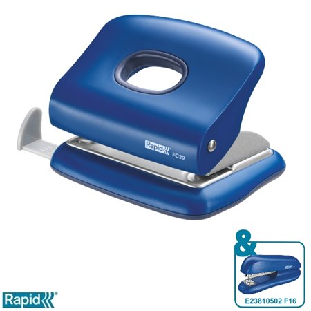 Lyukasztó, kétlyukú, 20 lap, RAPID "FC20", vízkék