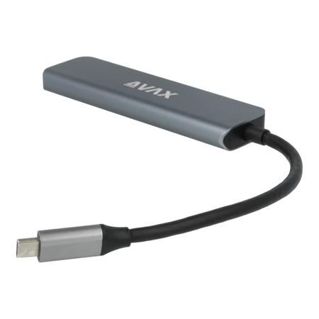 USB-C elosztó-HUB, HDMI+USB-C+2xUSB 3.0, PD, AVAX "HB611 Connect+", fekete