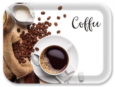 Tálca, szögletes, műanyag, kávé mintás, 33x24,5 cm